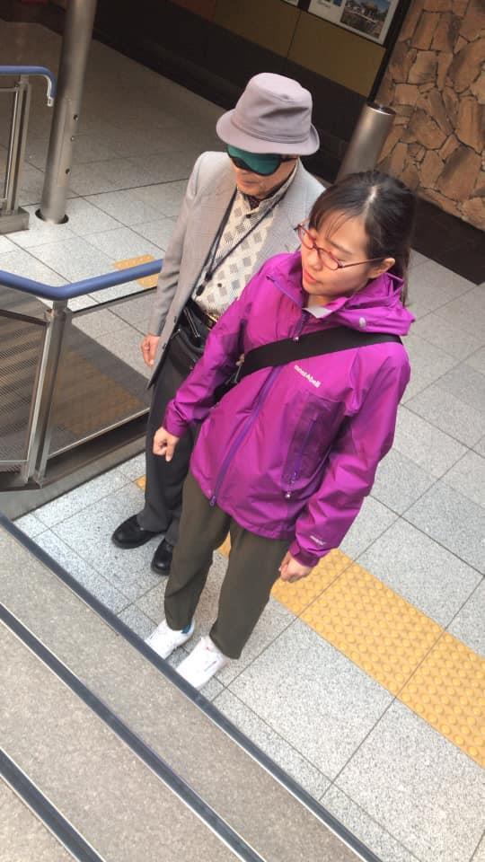 同行援護従事者はユーザーさん側後方から情報提供を行います。(盲導犬側からの情報提供してしまうと、盲導犬も気散ってしまったり、仕事に集中できなくなる恐れがあるためです)