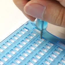 点字を刻印するにあたって、視覚障がい者が1枚1枚手作業にて刻印しております。