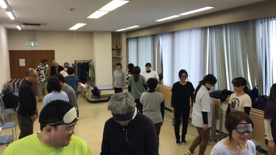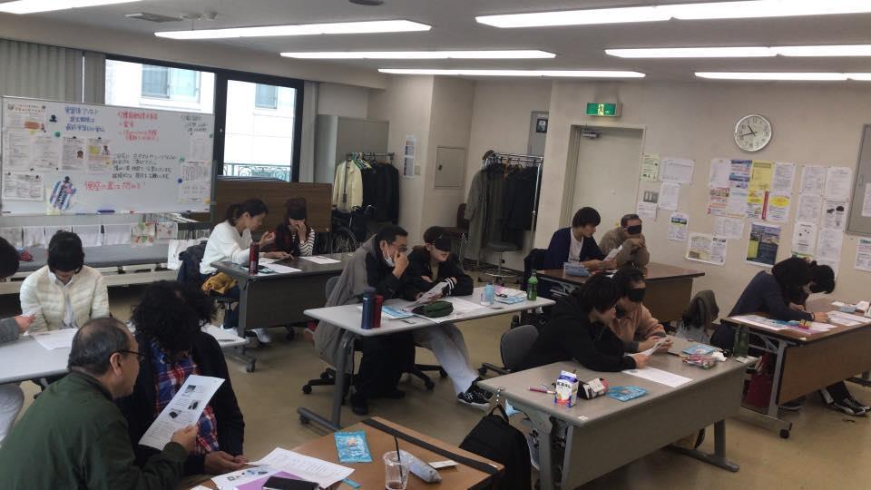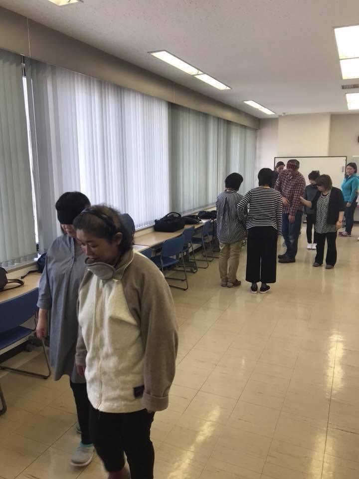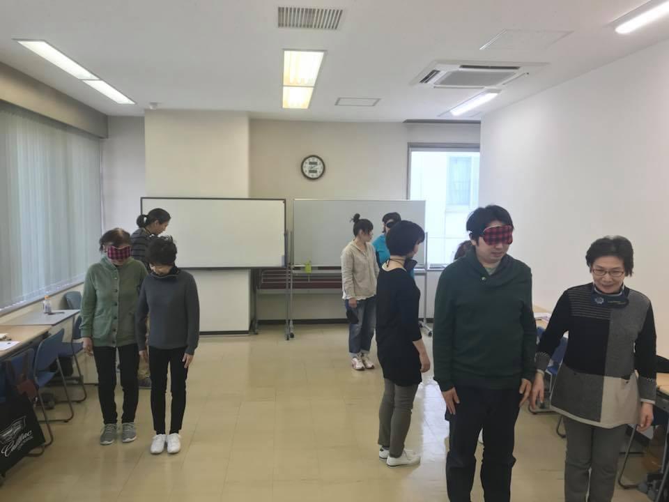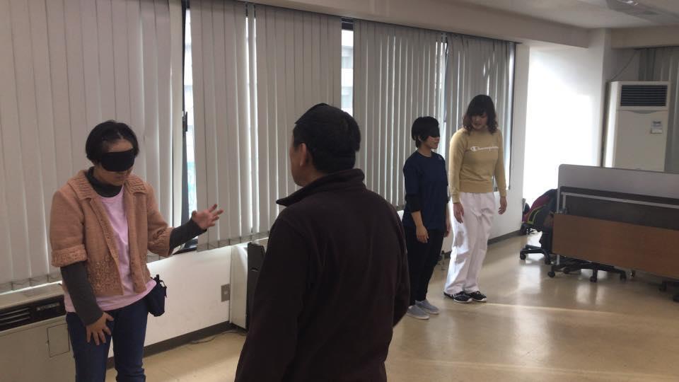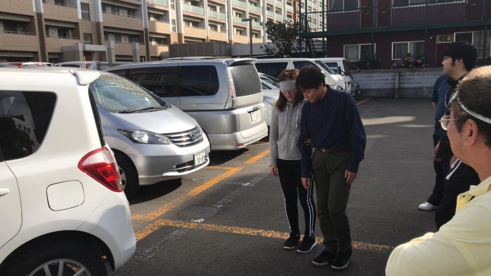 11月9~10日は18:00~21:00/9:00~16:30と2日間にかけて、視覚障害者との外出支援の基本を学びました。
