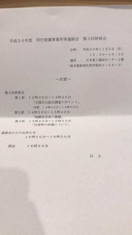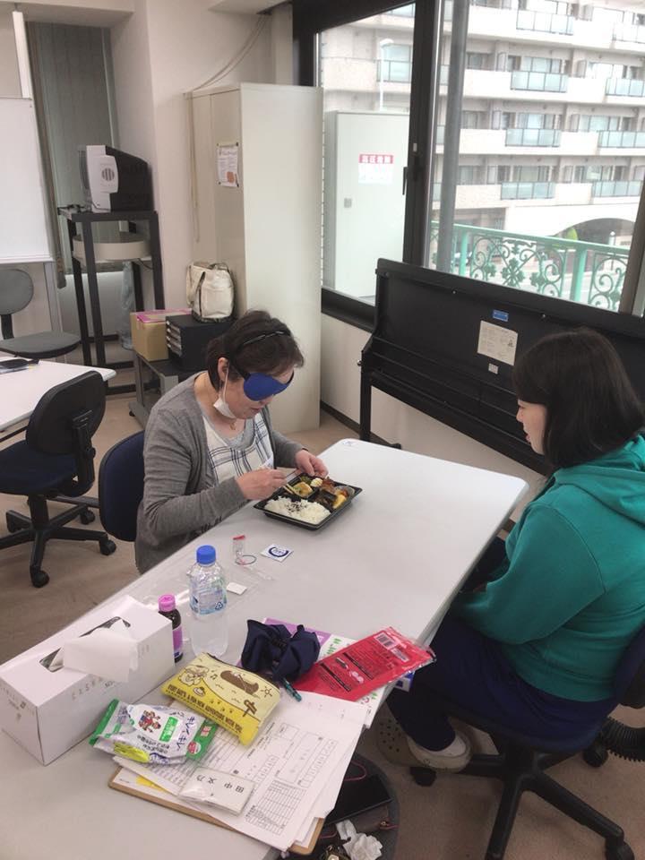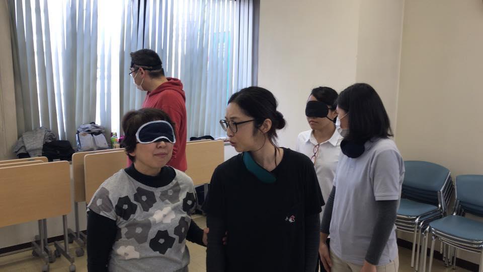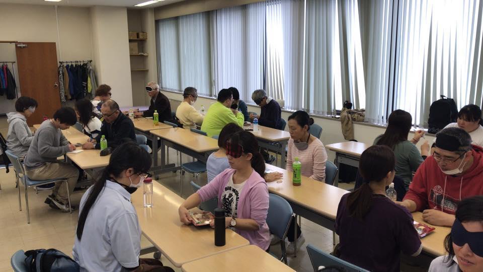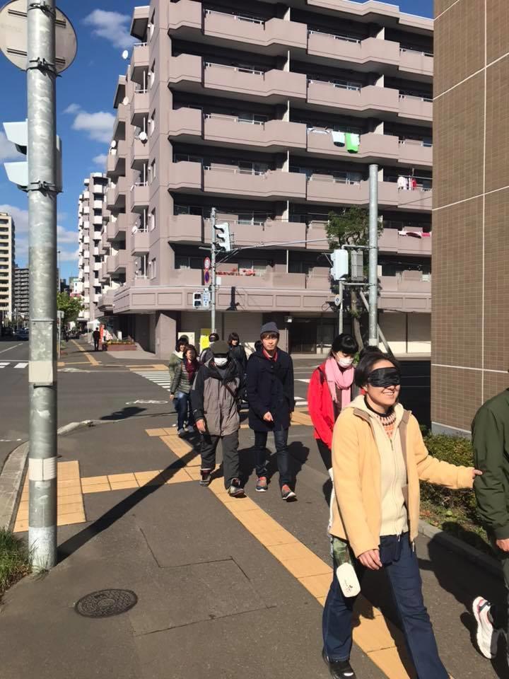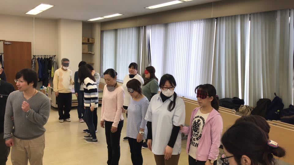 11月9~10日は18:00~21:00/9:00~16:30と2日間にかけて、視覚障害者との外出支援の基本を学びました。