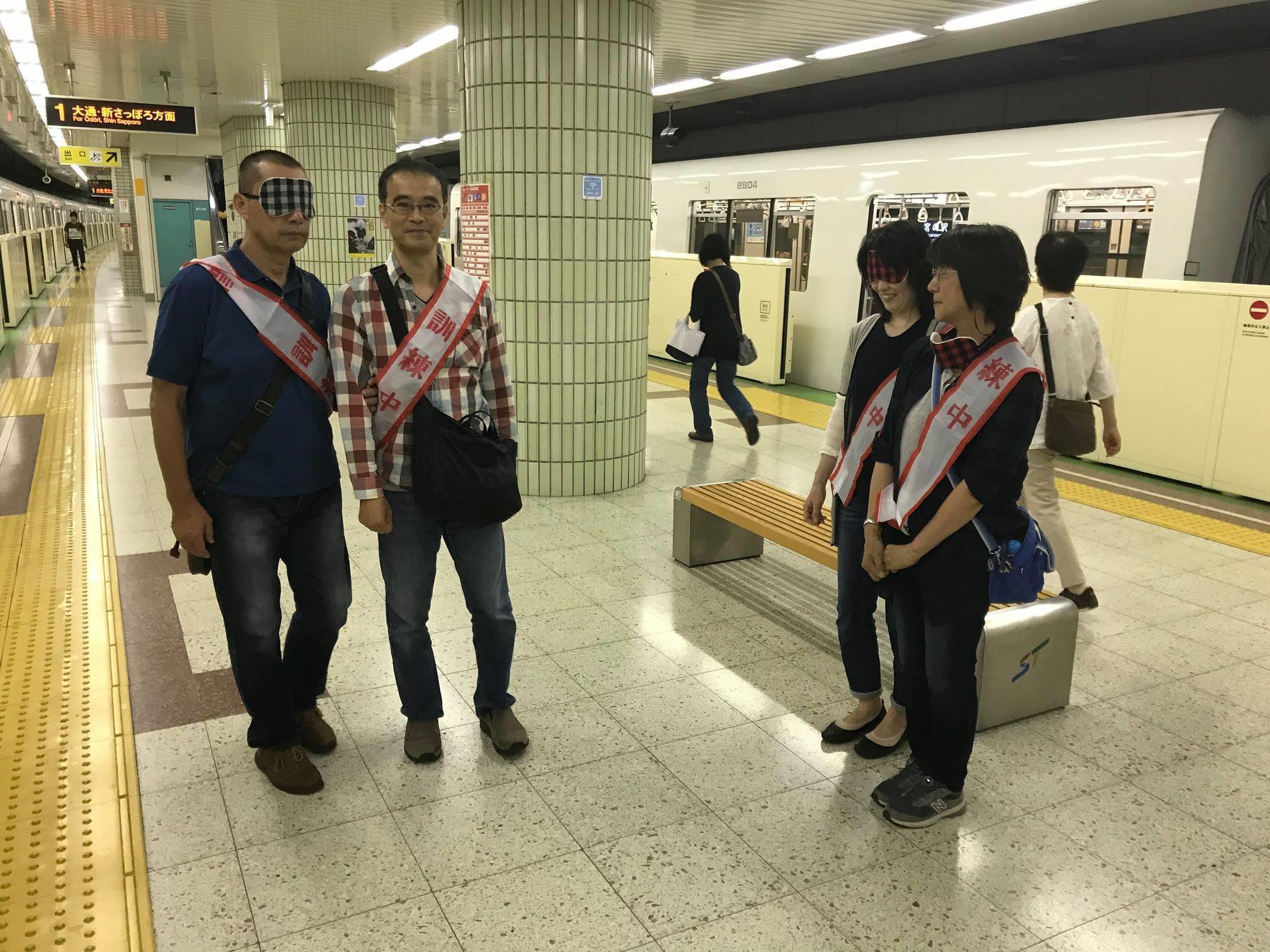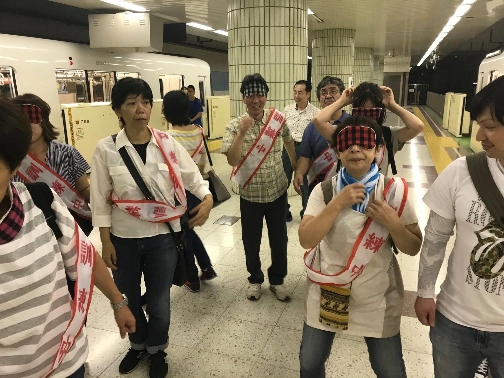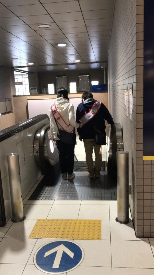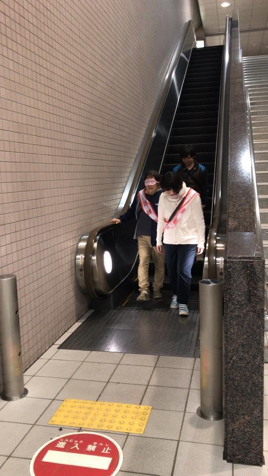 本日は基本動作の反復練習(ドアの通過、階段昇降)を主軸にエスカレーター、改札、地下鉄乗降の実践練習まで行いました。
