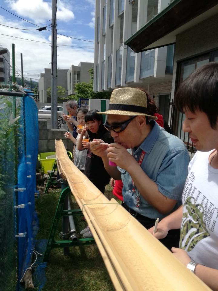 また、2年ぶりの開催となりました「流しそうめん焼肉懇親会」も天候にも恵まれて、たくさんの方に参加していただけました。