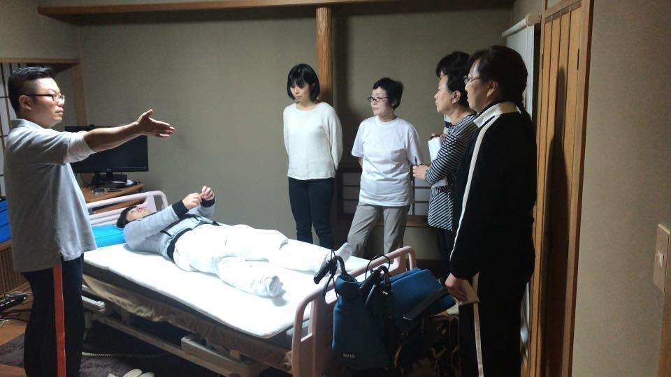 本日は藤井先生にお越しいただき、腰に負担をかけない介助技術を学びました。