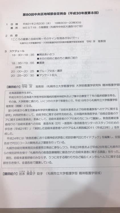 今回は札幌市立大学 准教授 守村 洋様に「心の健康と自殺対策」について講話いただきました。