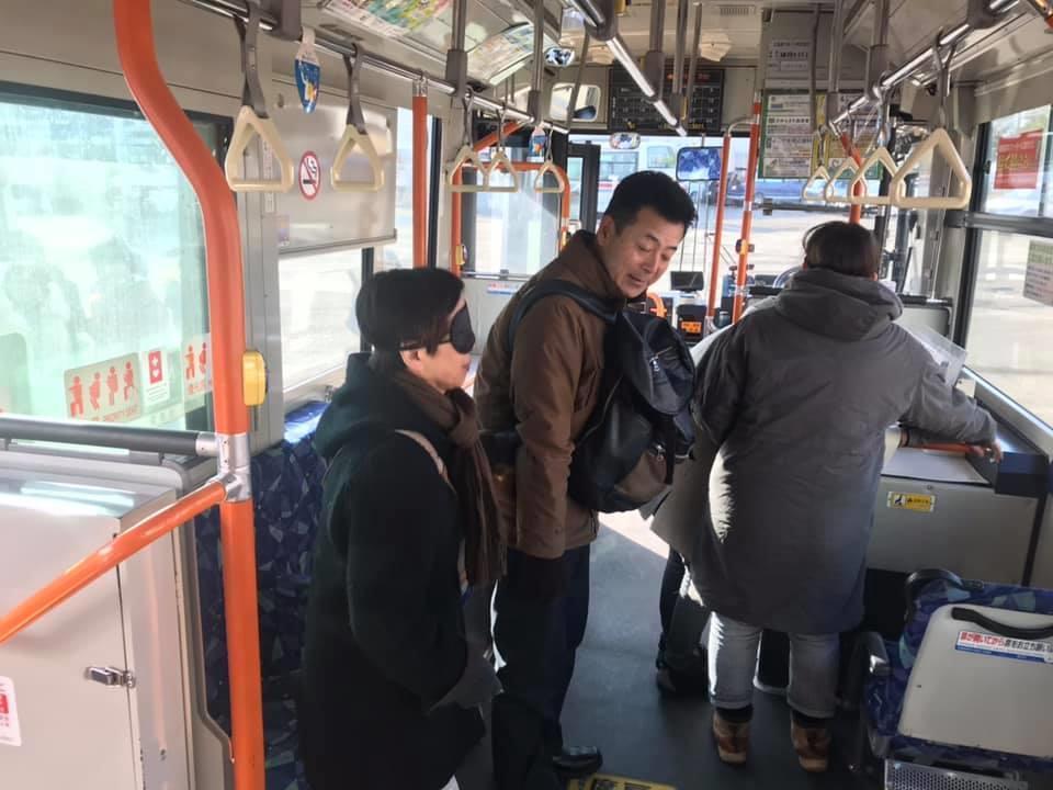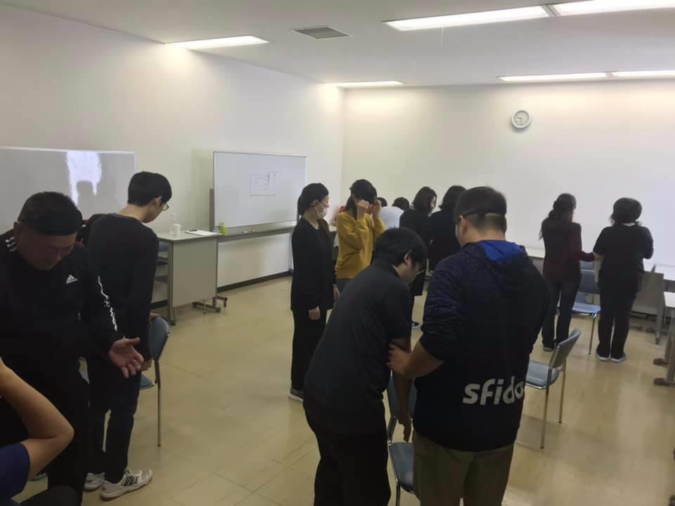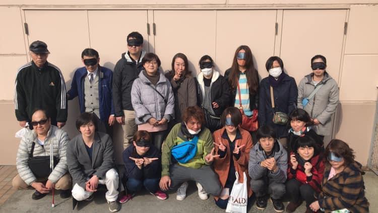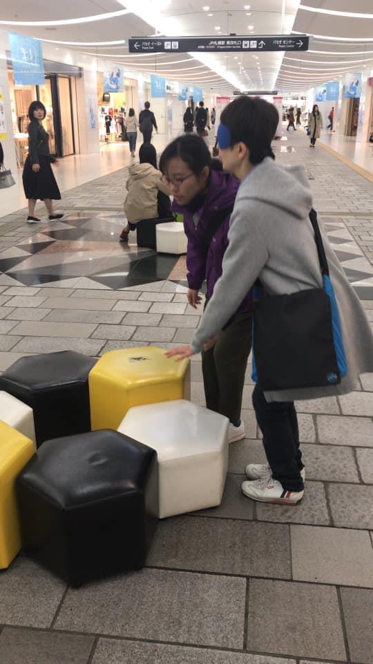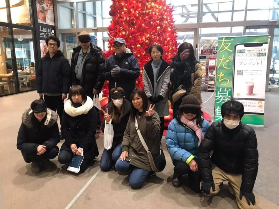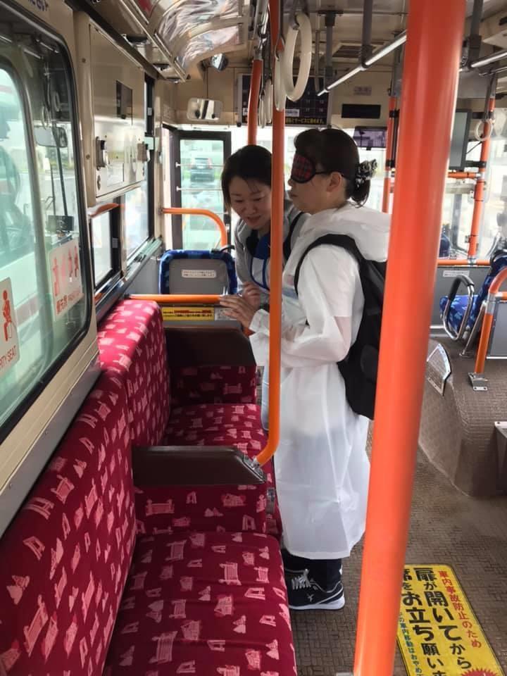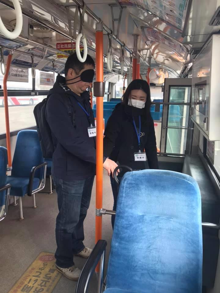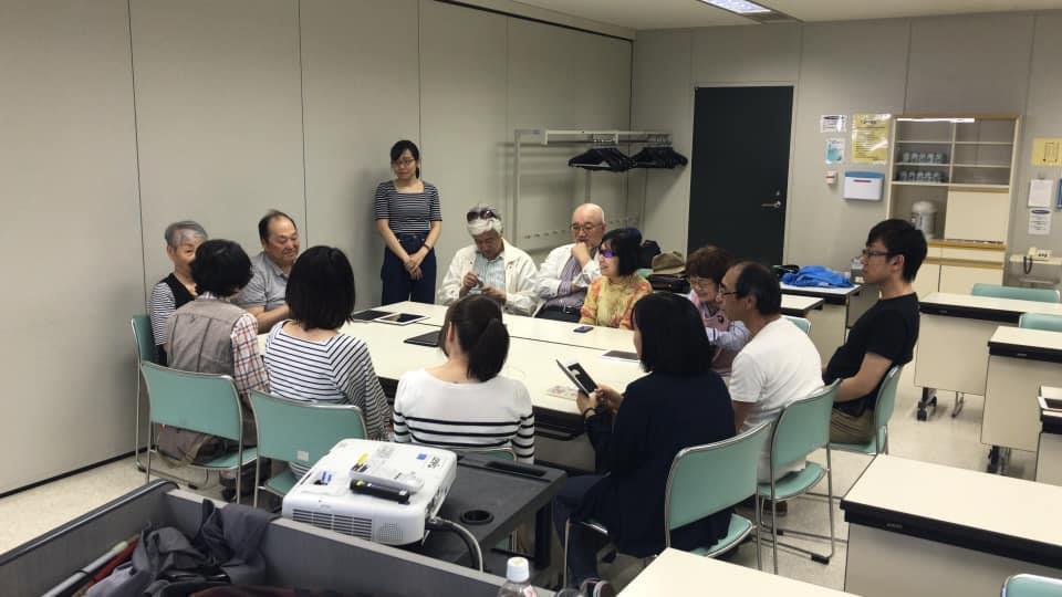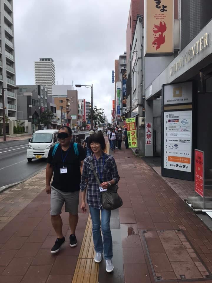 参加者19名、アイマスク体験を通じて、視覚障害者の心理や行動の不便さについて学習しました。