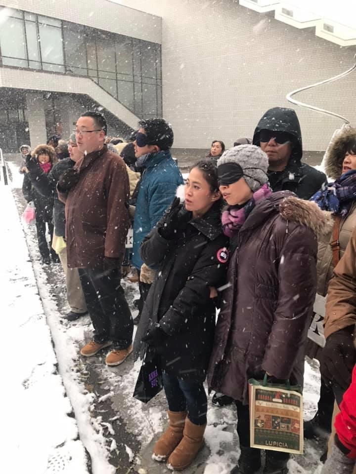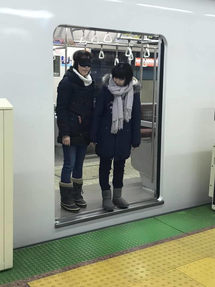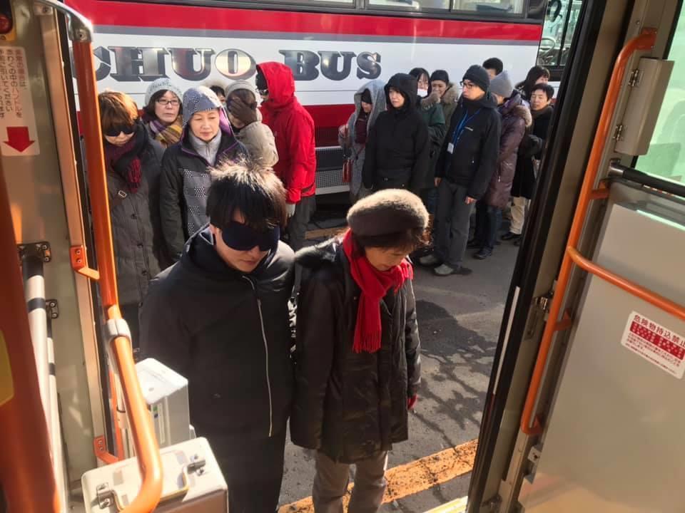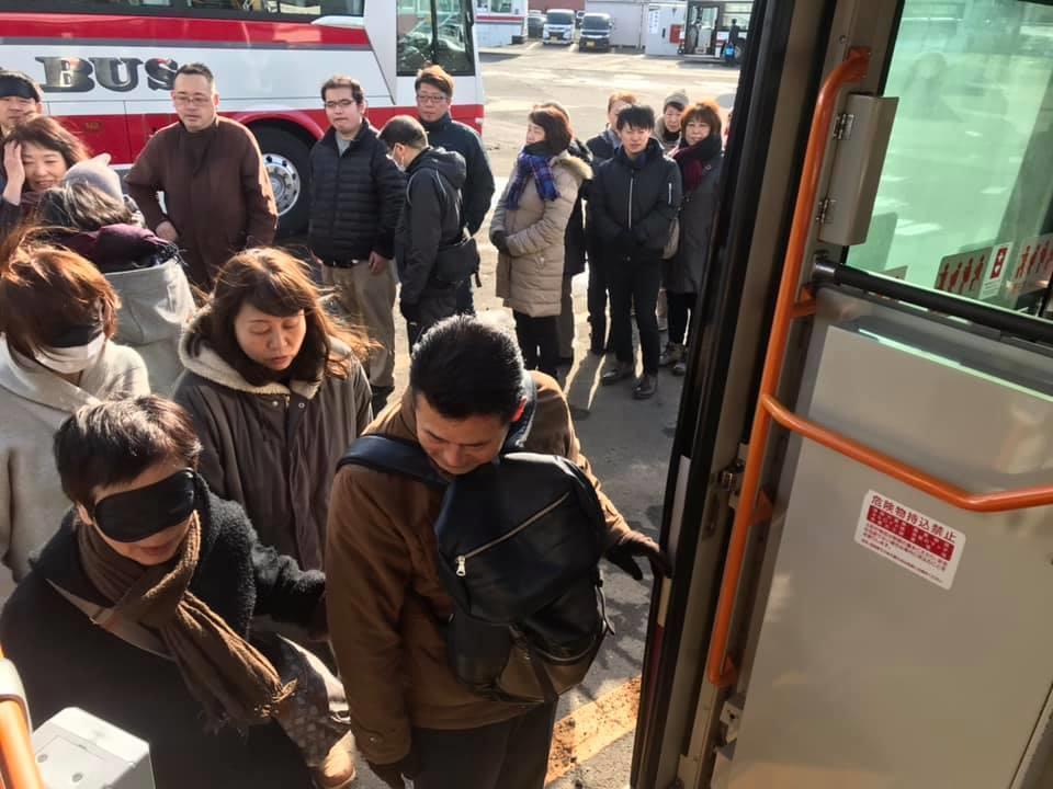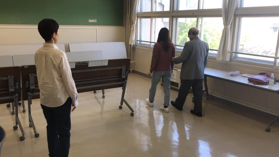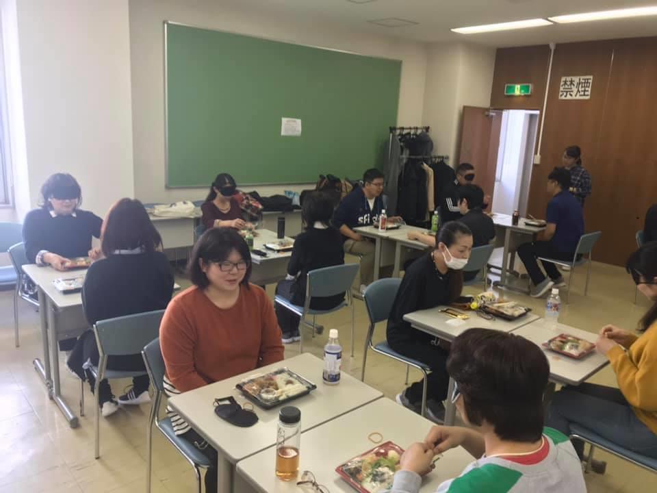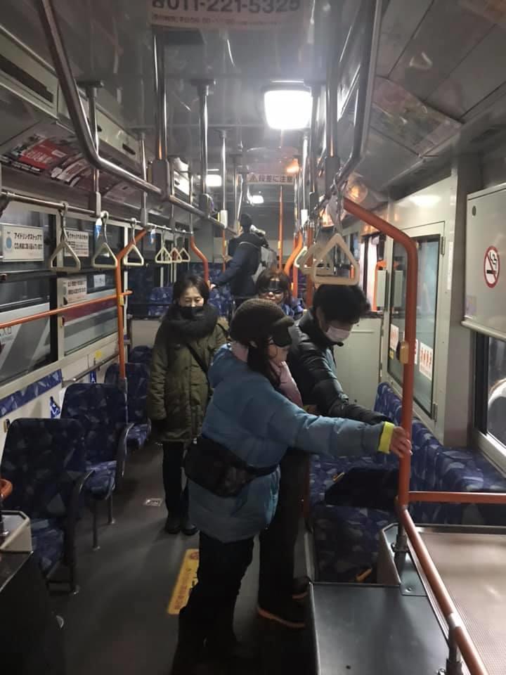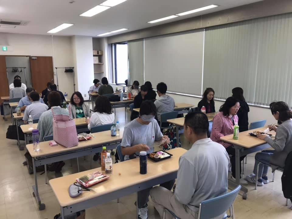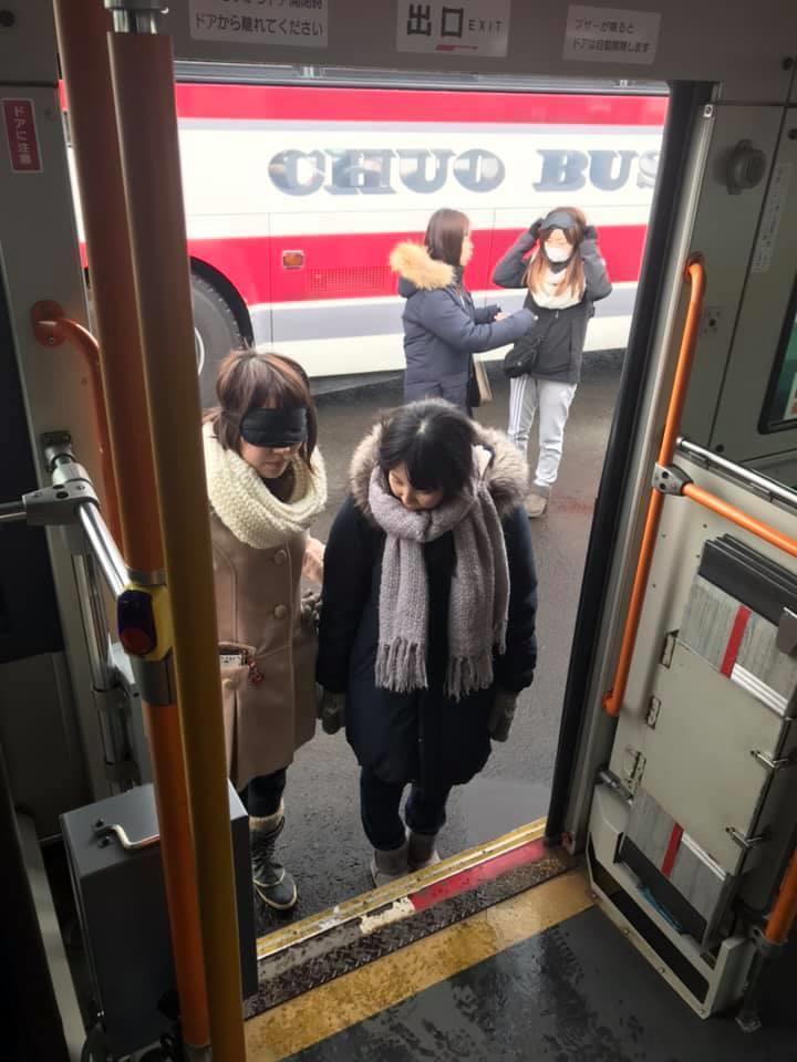 参加者19名、アイマスク体験を通じて、視覚障害者の心理や行動の不便さについて学習しました。