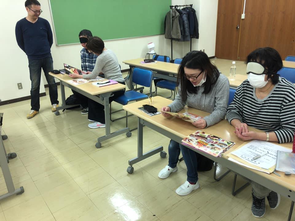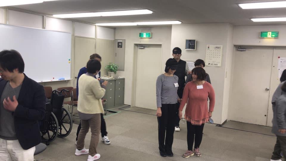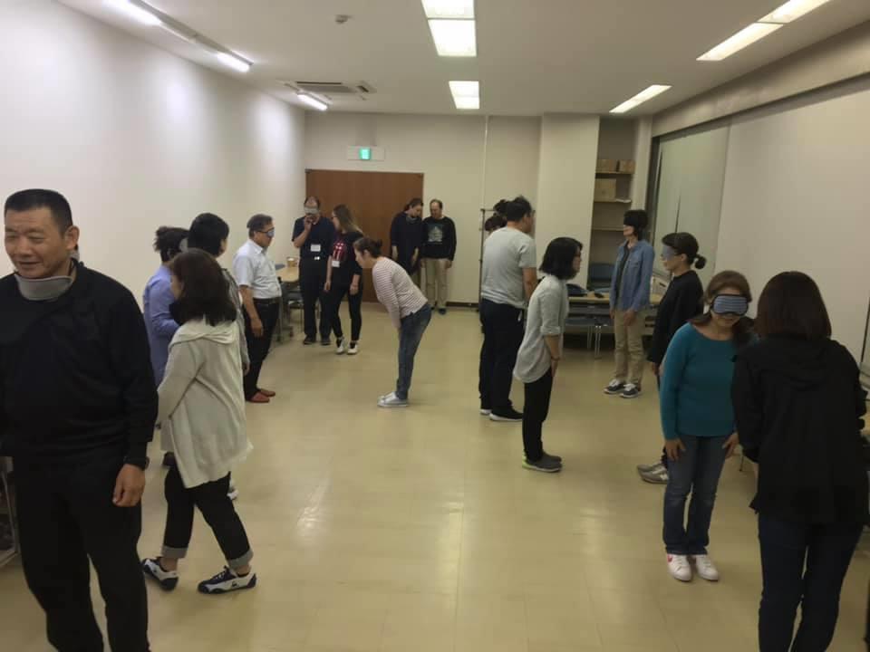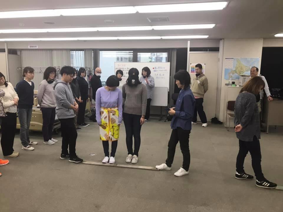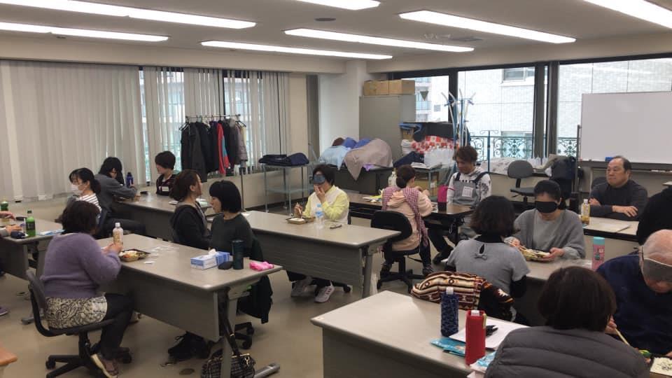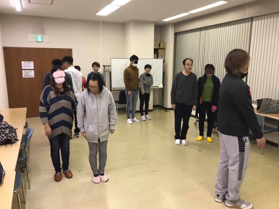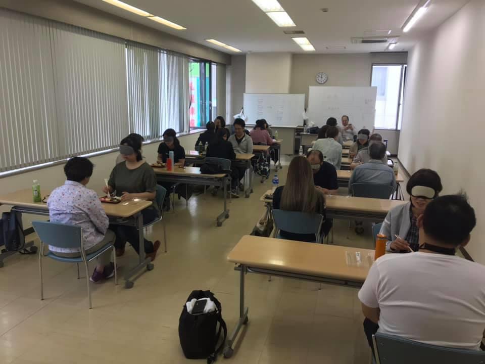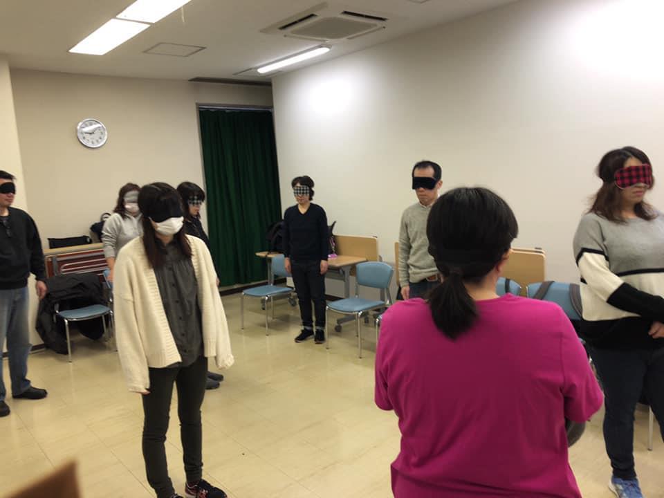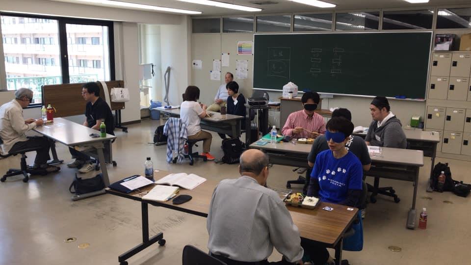 参加者29名(応用課程30名)、生徒さんから一般参加者まで各々がアイマスク体験を通じて、見えない心理、手引きの重要度等を学習しました。