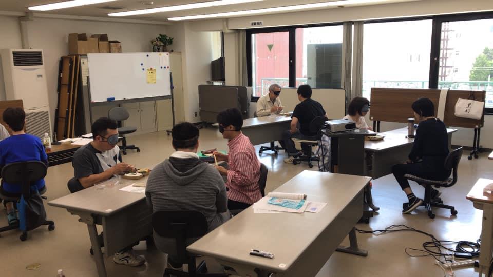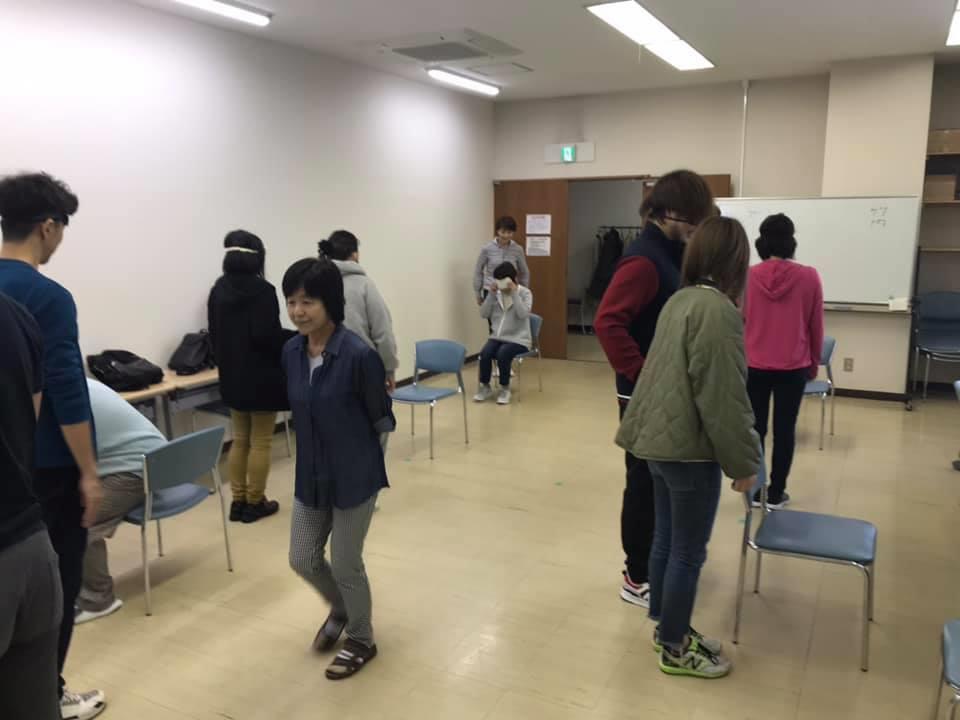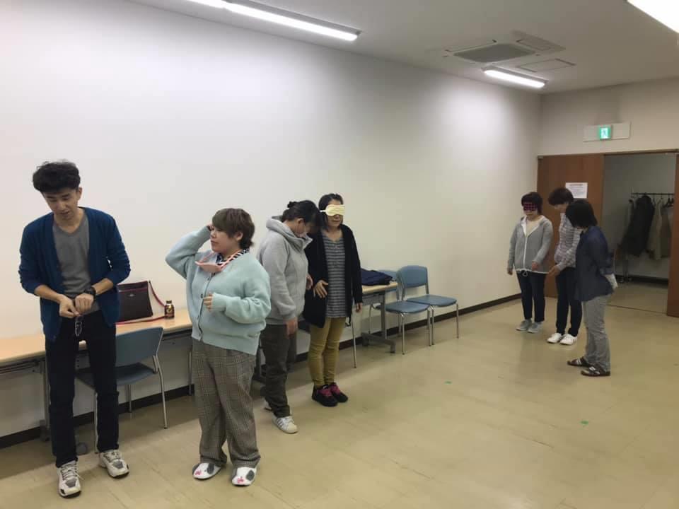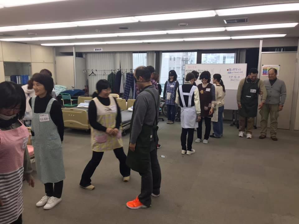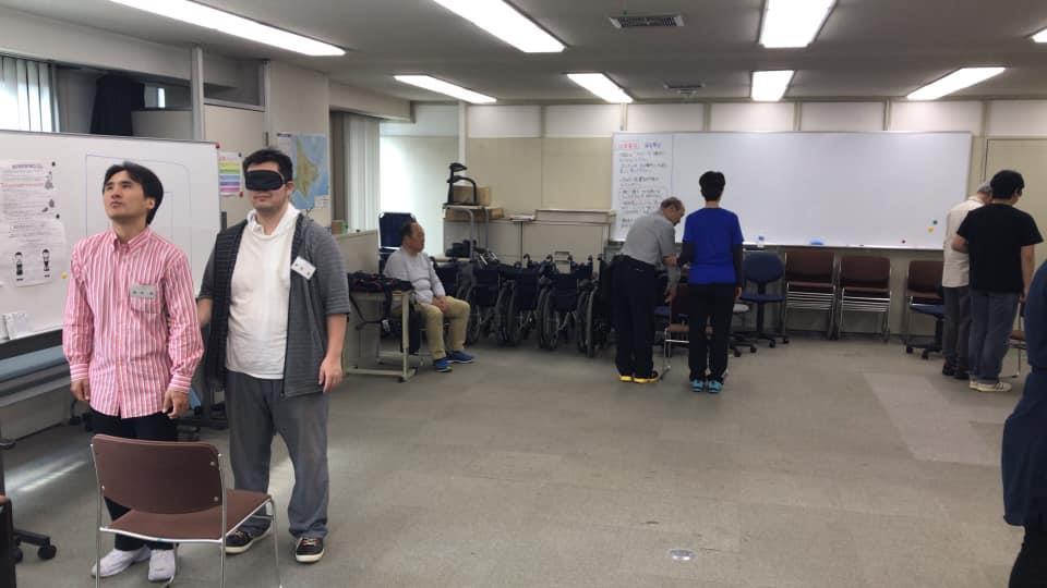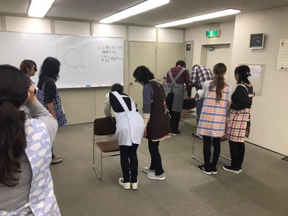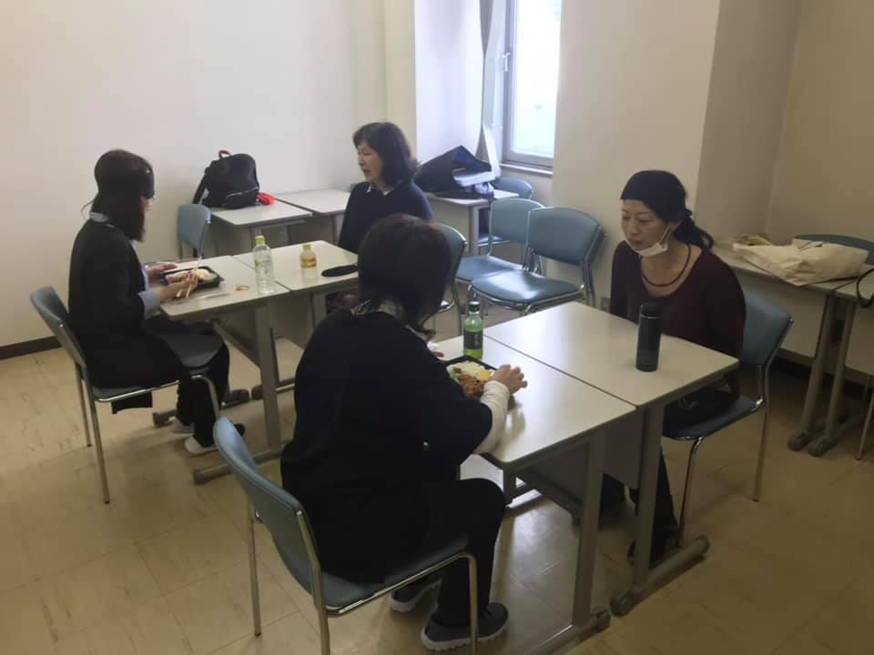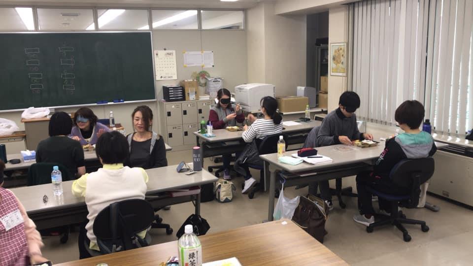 参加者29名(応用課程30名)、生徒さんから一般参加者まで各々がアイマスク体験を通じて、見えない心理、手引きの重要度等を学習しました。