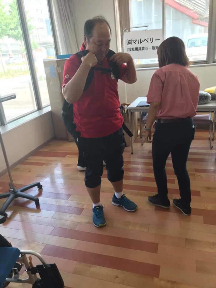 (片麻痺設定)自身で着脱することで、当事者の大変さや、どこがポイントなのか等々理解することができました。