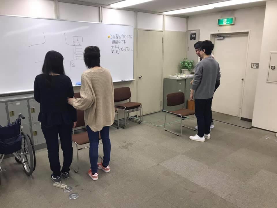 3月2日・3日は18:00~21:00/9:00~18:00と2日間にかけて、視覚障害者との外出支援の応用について学びました。