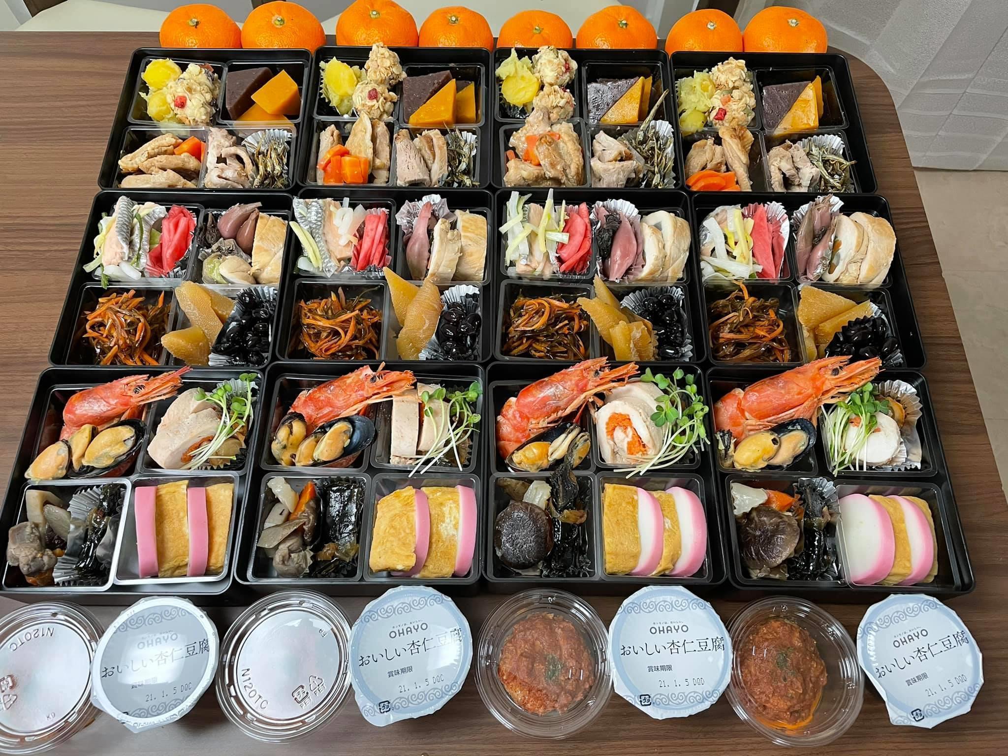 暮れの忙しい中、ヘルパーさん方が1品ずつ持ち寄ってくださったおせちは、とても豪華なものとなりました!