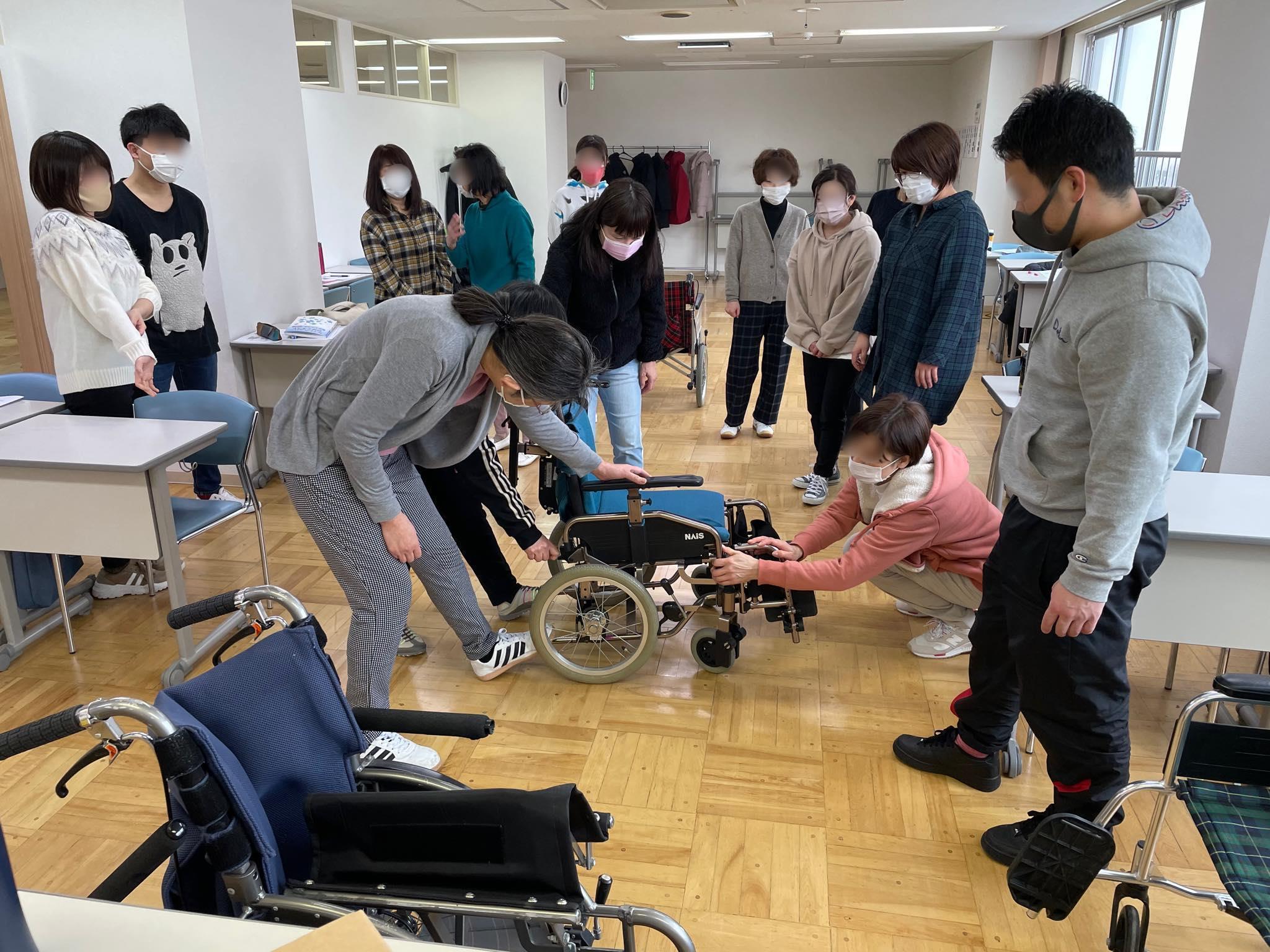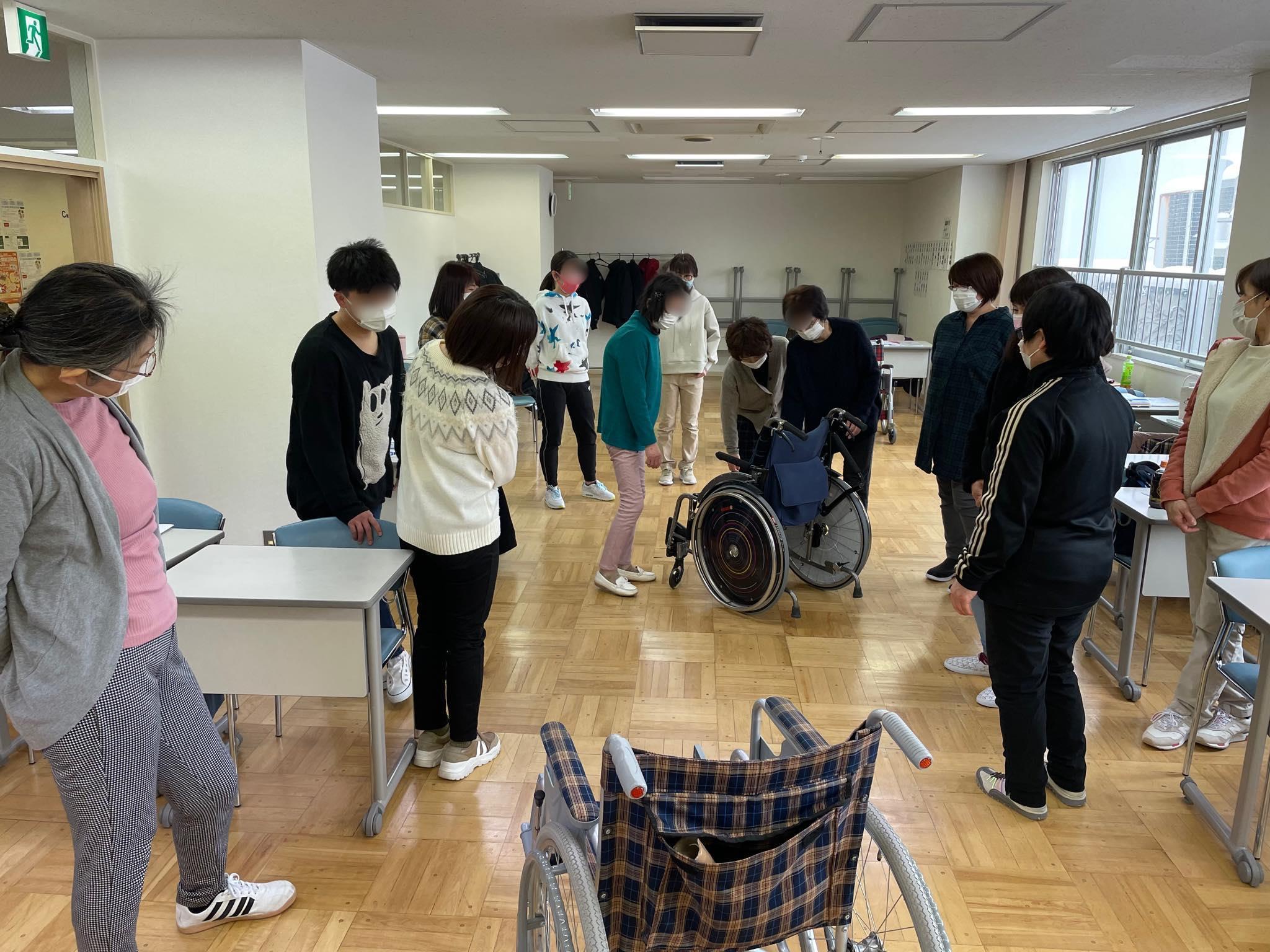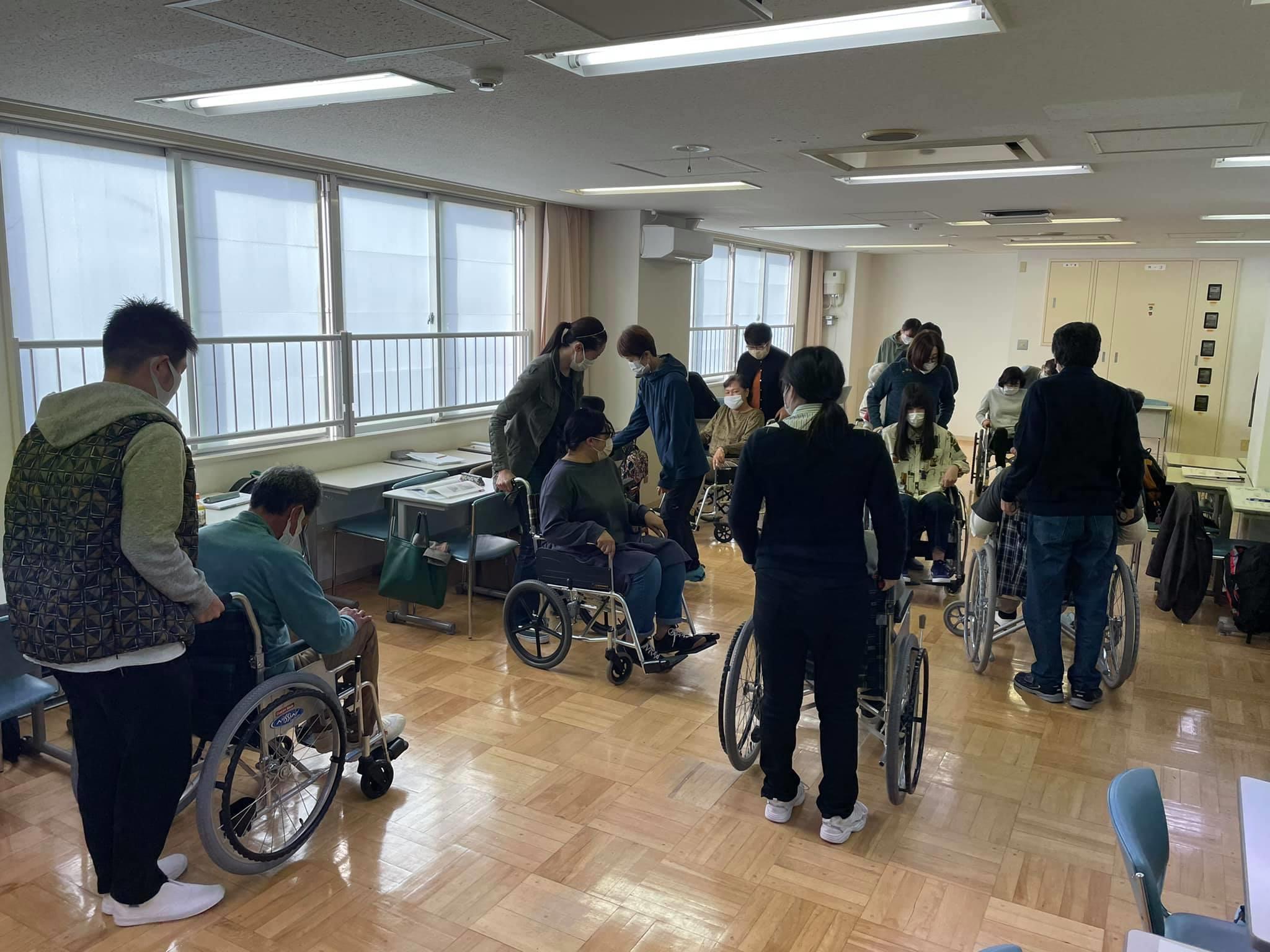 2月27日(参加者15名)車いすの構造、基本操作から公共機関を利用しての外出迄を学習致しました。
