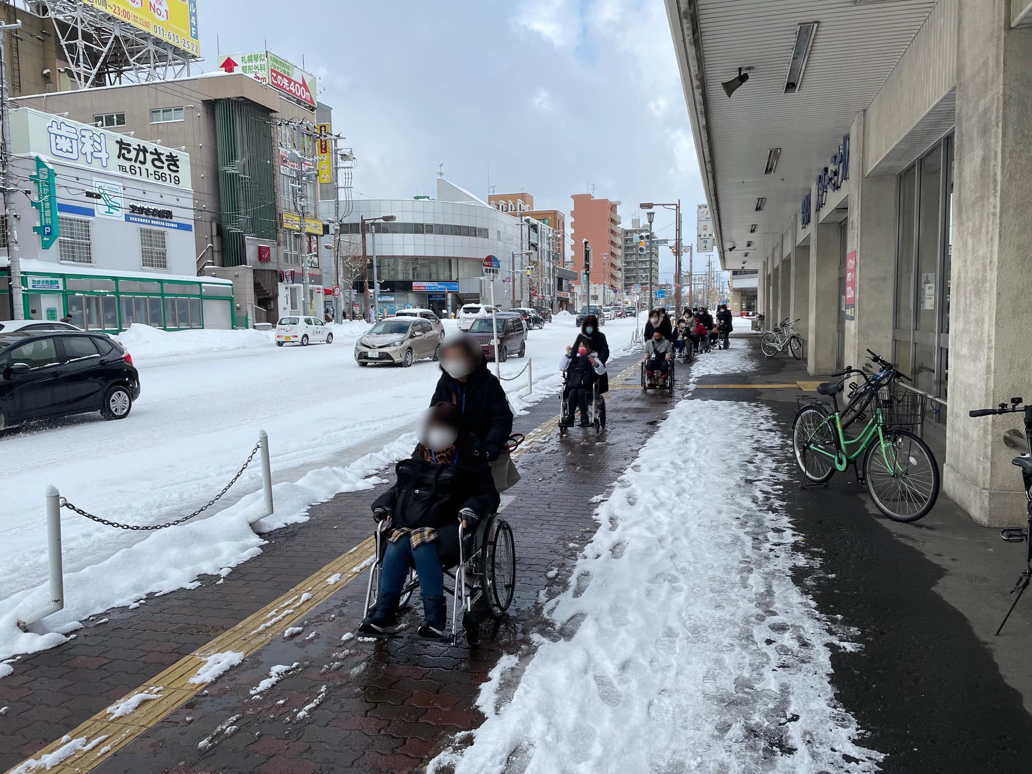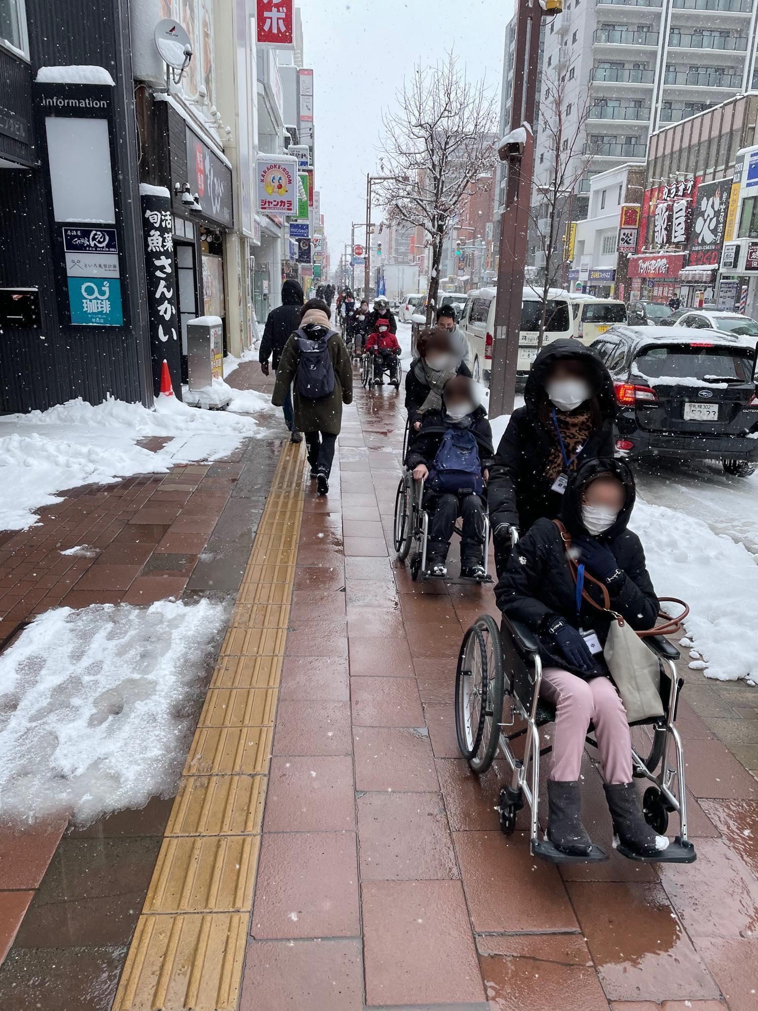 介助を受ける側としての冷気対策の重要性、介助する側としての雪道移動の困難さと体力の必要性を痛感することができました。