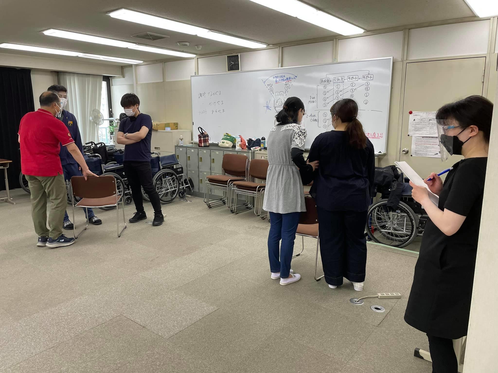 7月3日(参加者12名)車いすの構造、基本操作から公共機関を利用しての外出迄を学習致しました。