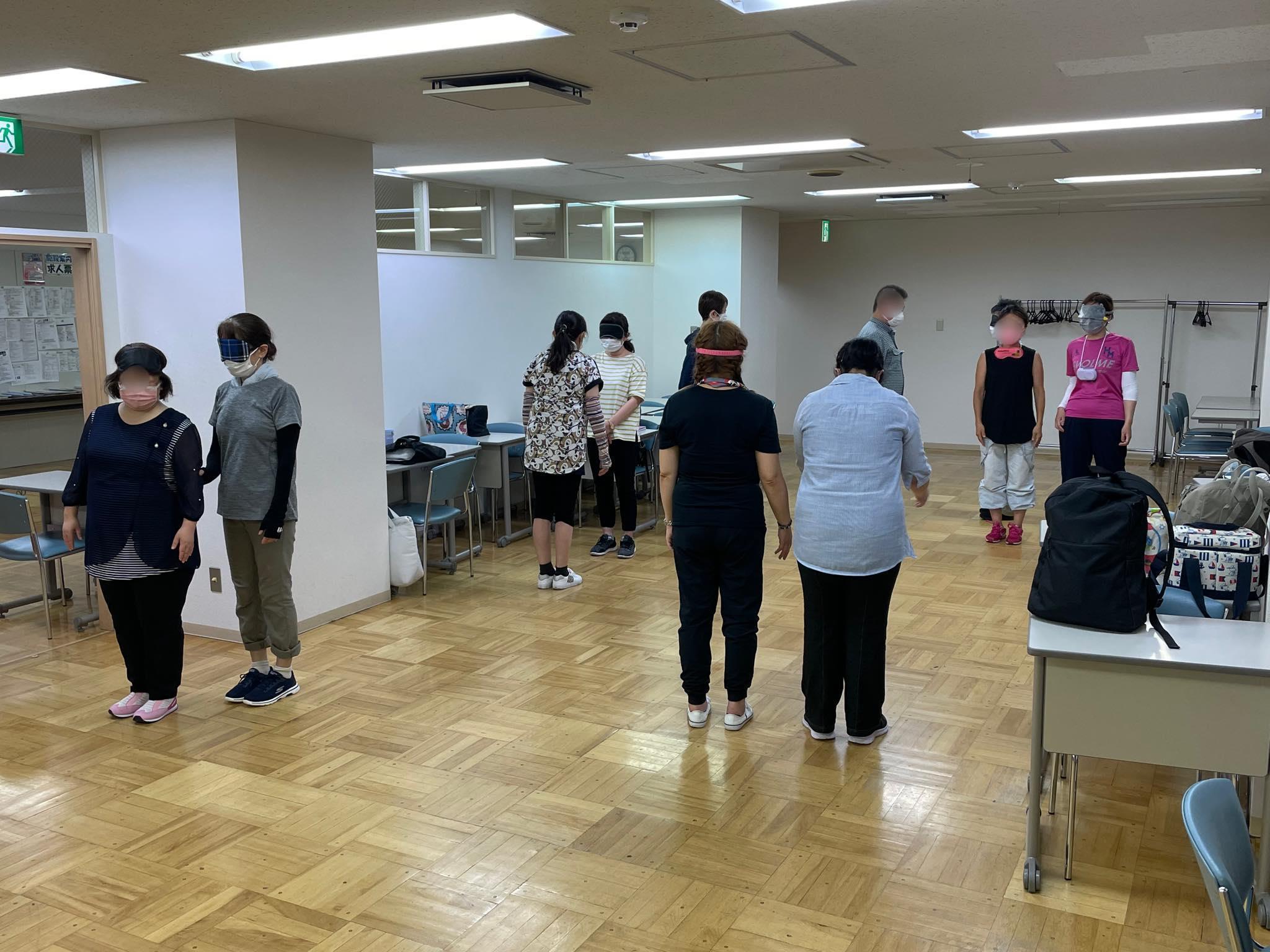 6月7日から5日間連続のハードスケジュールにて、視覚障害者の心理体験や移動における介助方法などについて学習しました。
