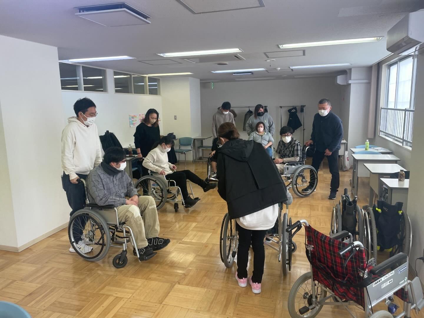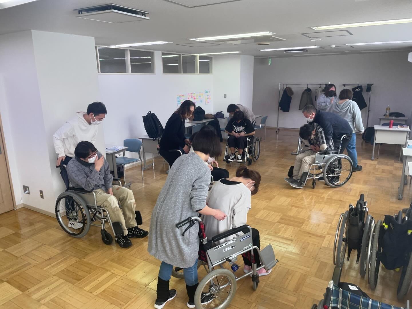 2月17日(参加者12名)車イスの基本動作、職業倫理について学習しました。