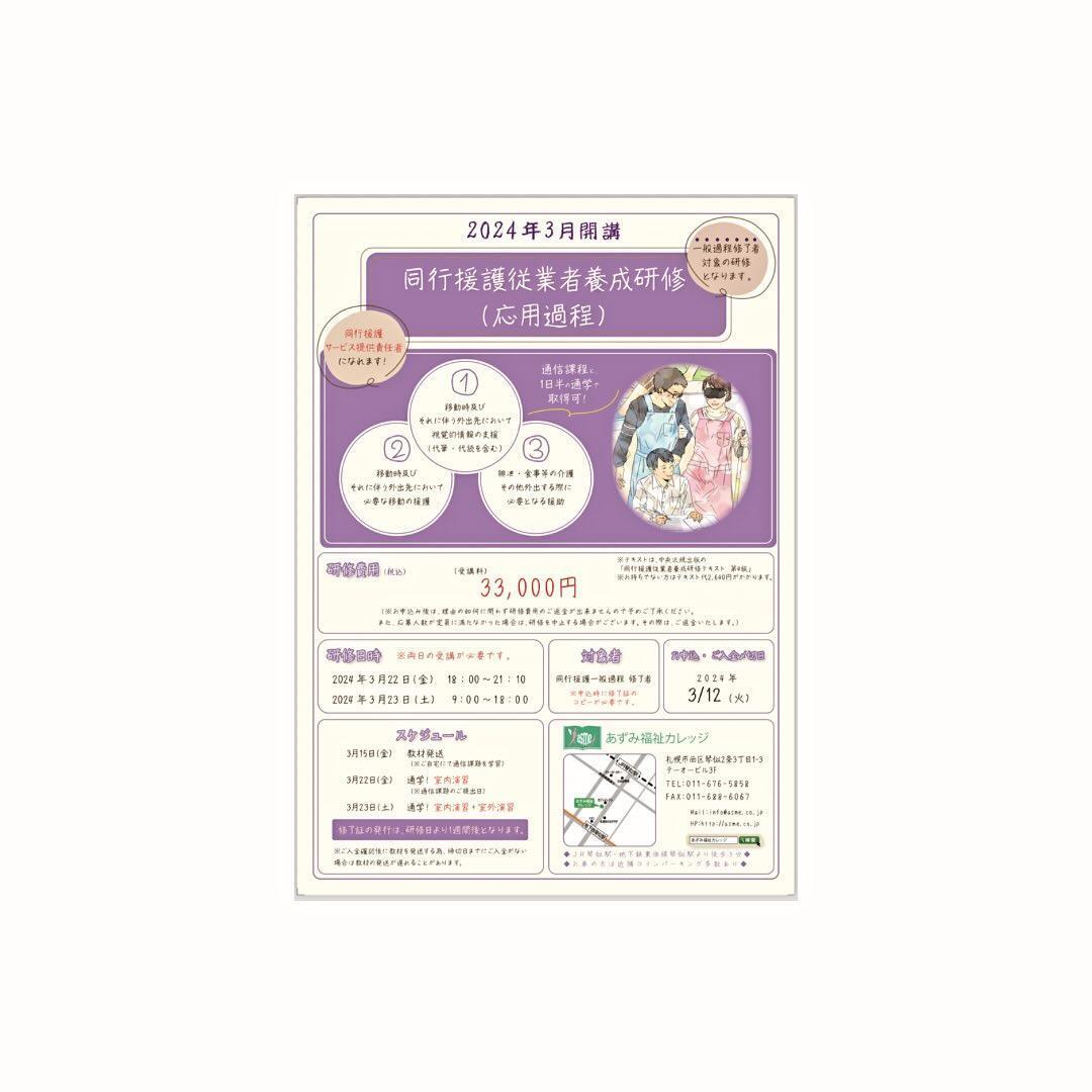 3月22日(金)と23日(土)の2日間で、同行援護従事者養成研修(応用課程)を開催いたします。